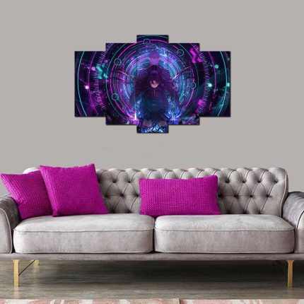 Silahlı Mekanik Kız Desenli 5 Parça MDF Tablo