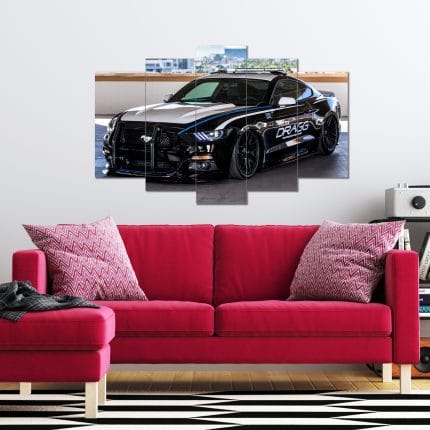 Modifiyeli Polis Arabası Mustang Görselli 5 Parça MDF Tablo