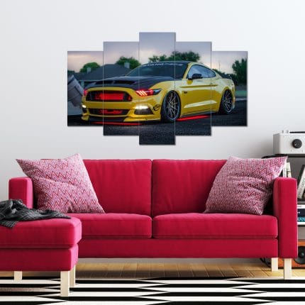 Sarı Mustang Shelby Görselli 5 Parça MDF Tablo