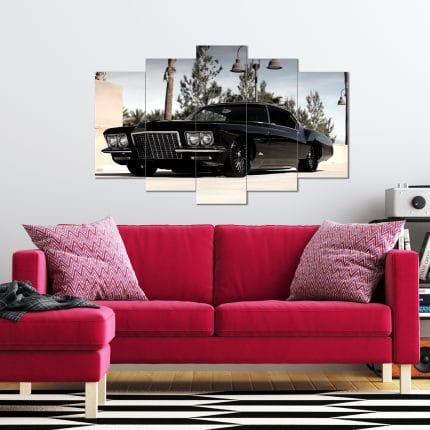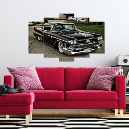Siyah Klasik Araba Görselli 5 Parça MDF Tablo