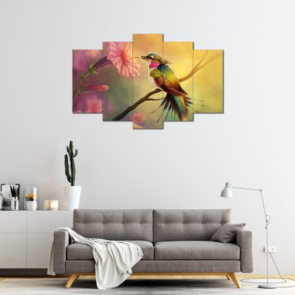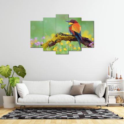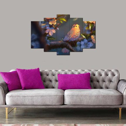 Illüstrasyon Kuş Desenli 5 Parça MDF Tablo