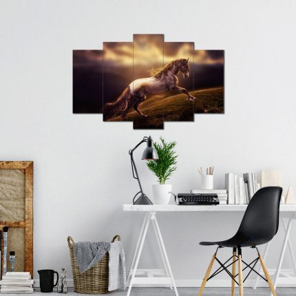 Koşan At Desenli 5 Parça MDF Tablo