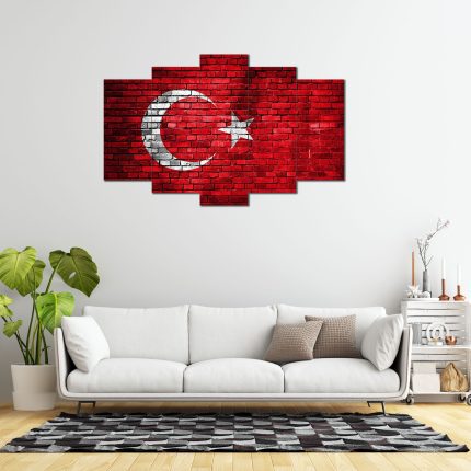 Duvar Üzerine Türk Bayrağı Desenli 5 Parça MDF Tablo
