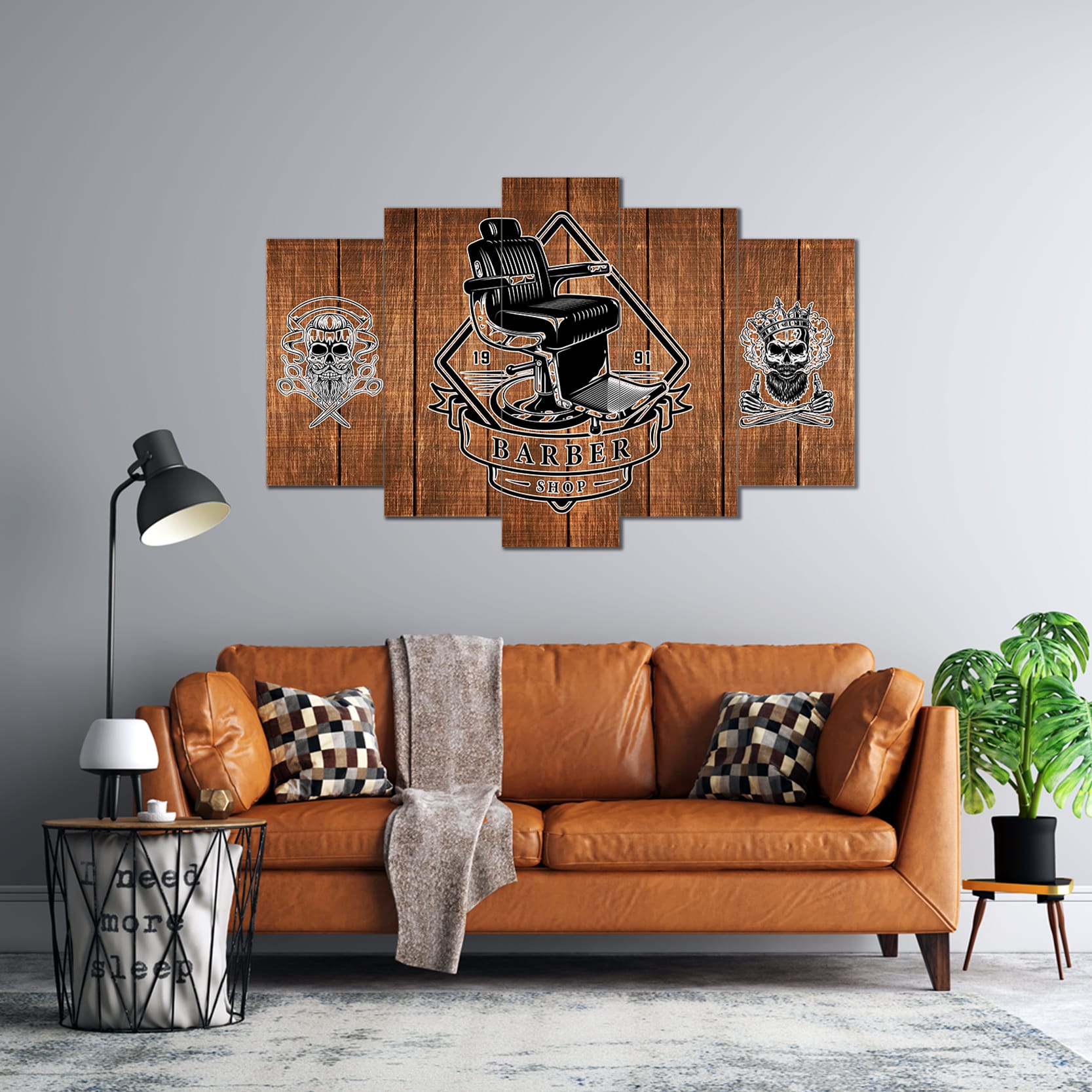 Berber - Kuaför Tasarımlı 5 Parça MDF Tablo
