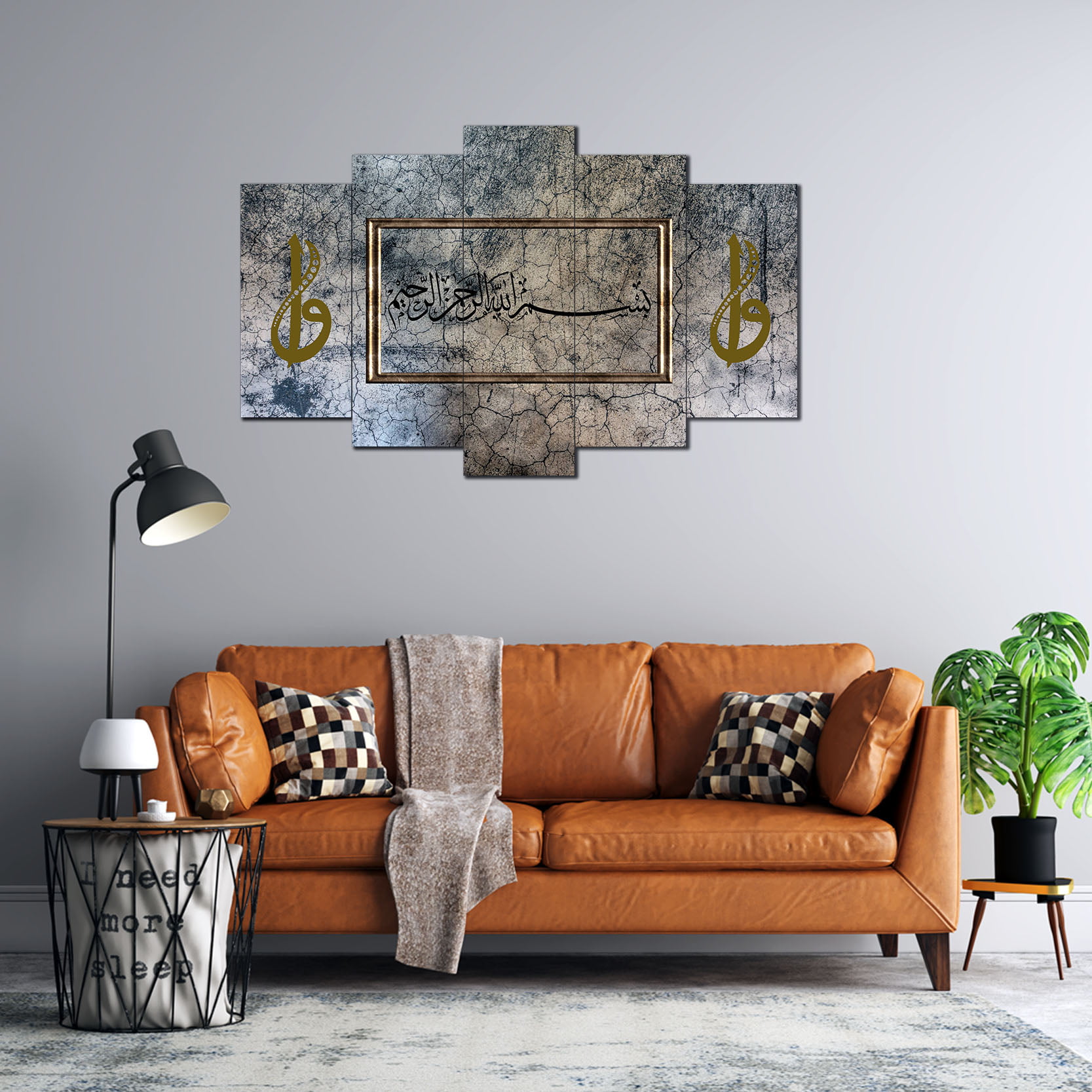 Besmele ve Elif-Vav Desenli 5 Parça MDF Tablo