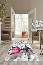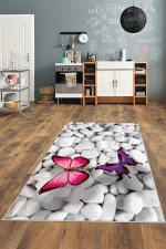 - Beyaz Taş Desenli Kelebekli Yıkanabilir Kaymaz Taban Leke Tutmaz Modern Salon Halısı ve Yolluk Hav Yüksekliği: 7-8 mmdir.