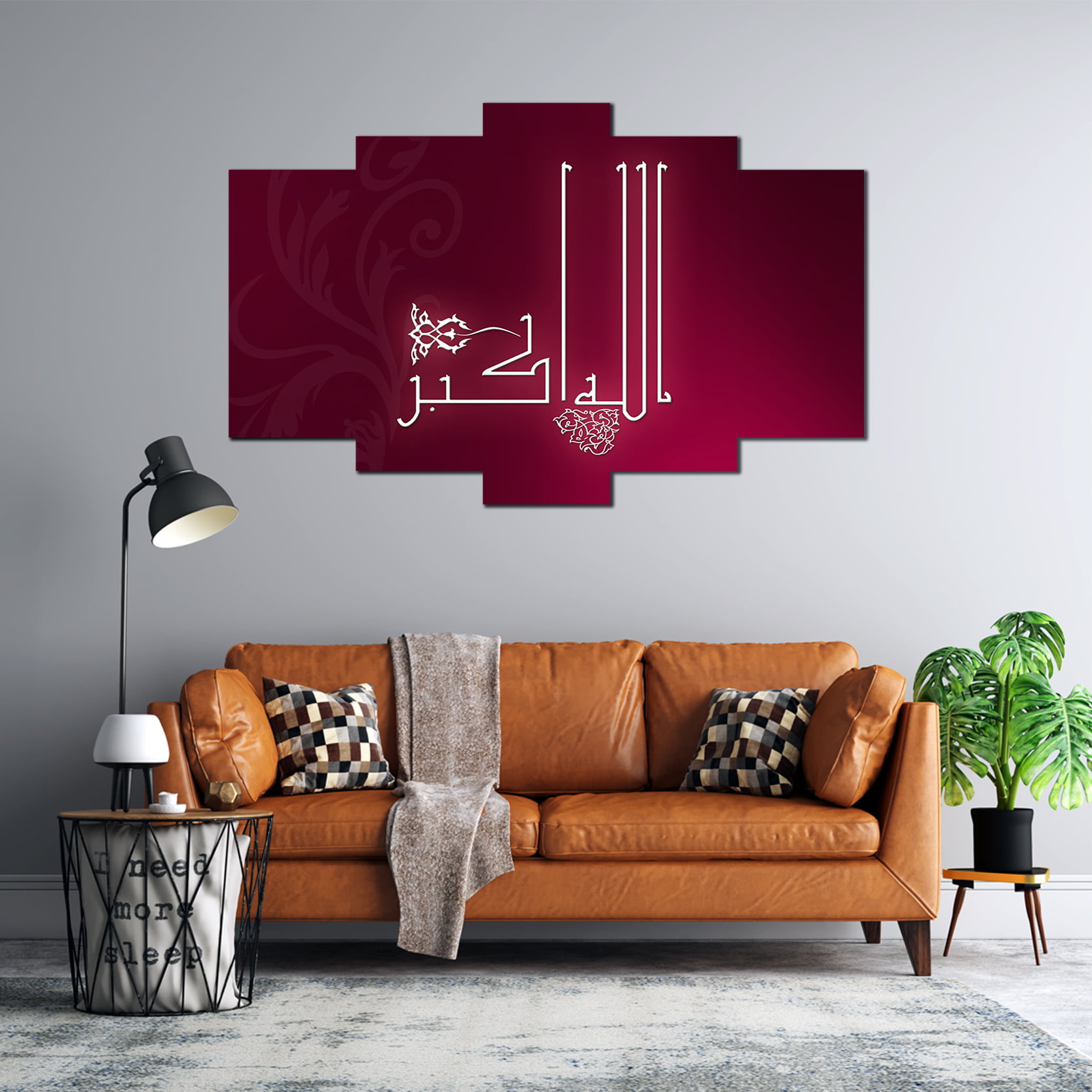 Bordo İslami Hat Yazısı Desenli 5 Parça MDF Tablo