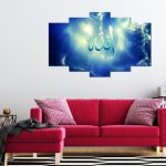 Gökyüzü ve Allah Yazısı Desenli 5 Parça MDF Tablo
