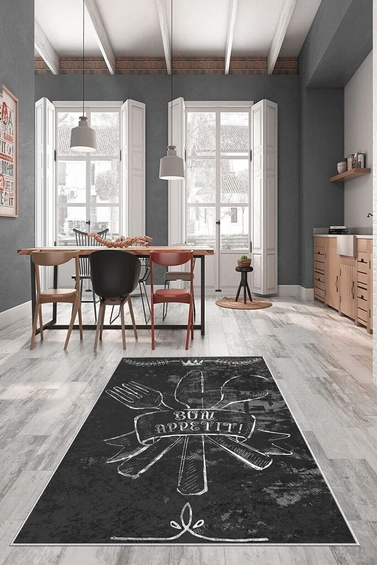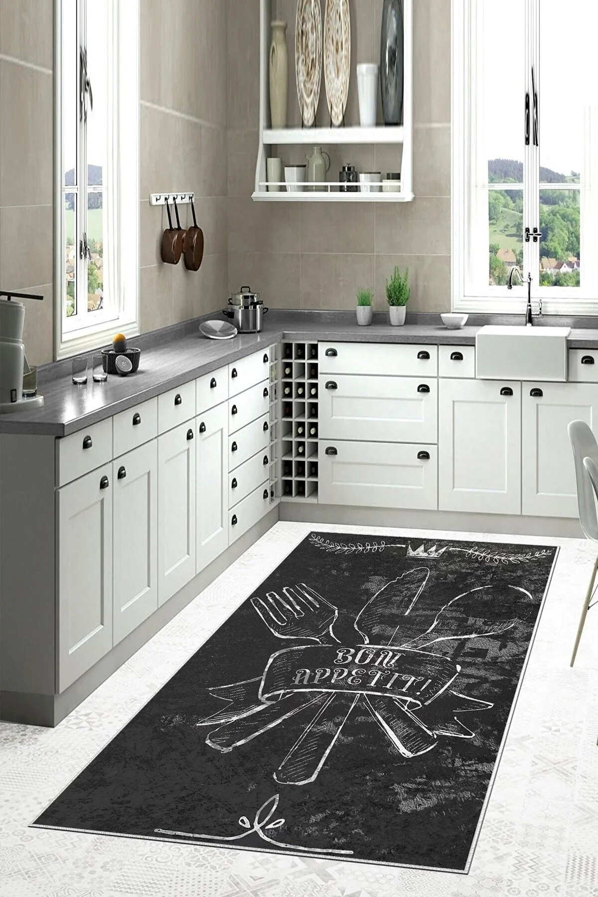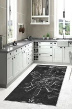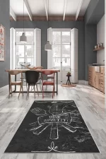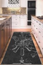 Gri Çatal Bıçak Setli Yıkanabilir Kaydırmaz Leke Tutmaz Mutfak Halısı (süngersiz)
