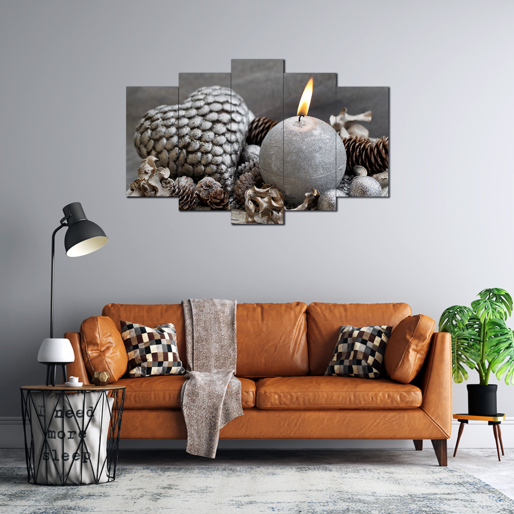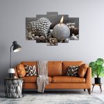 Ana Sayfa MDF TABLO DEKORATİF Gri Kozalak Ve Mum Desenli 5 Parça MDF Tablo