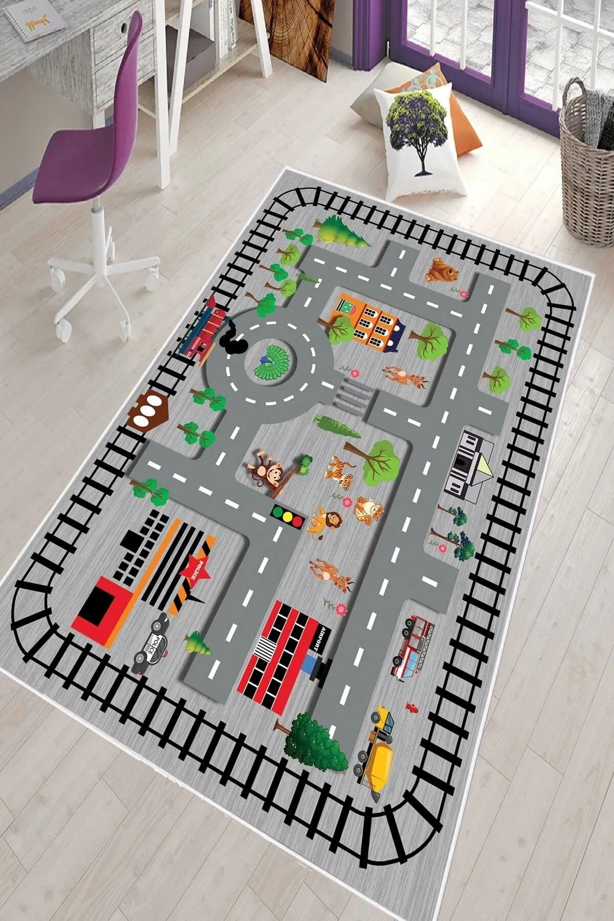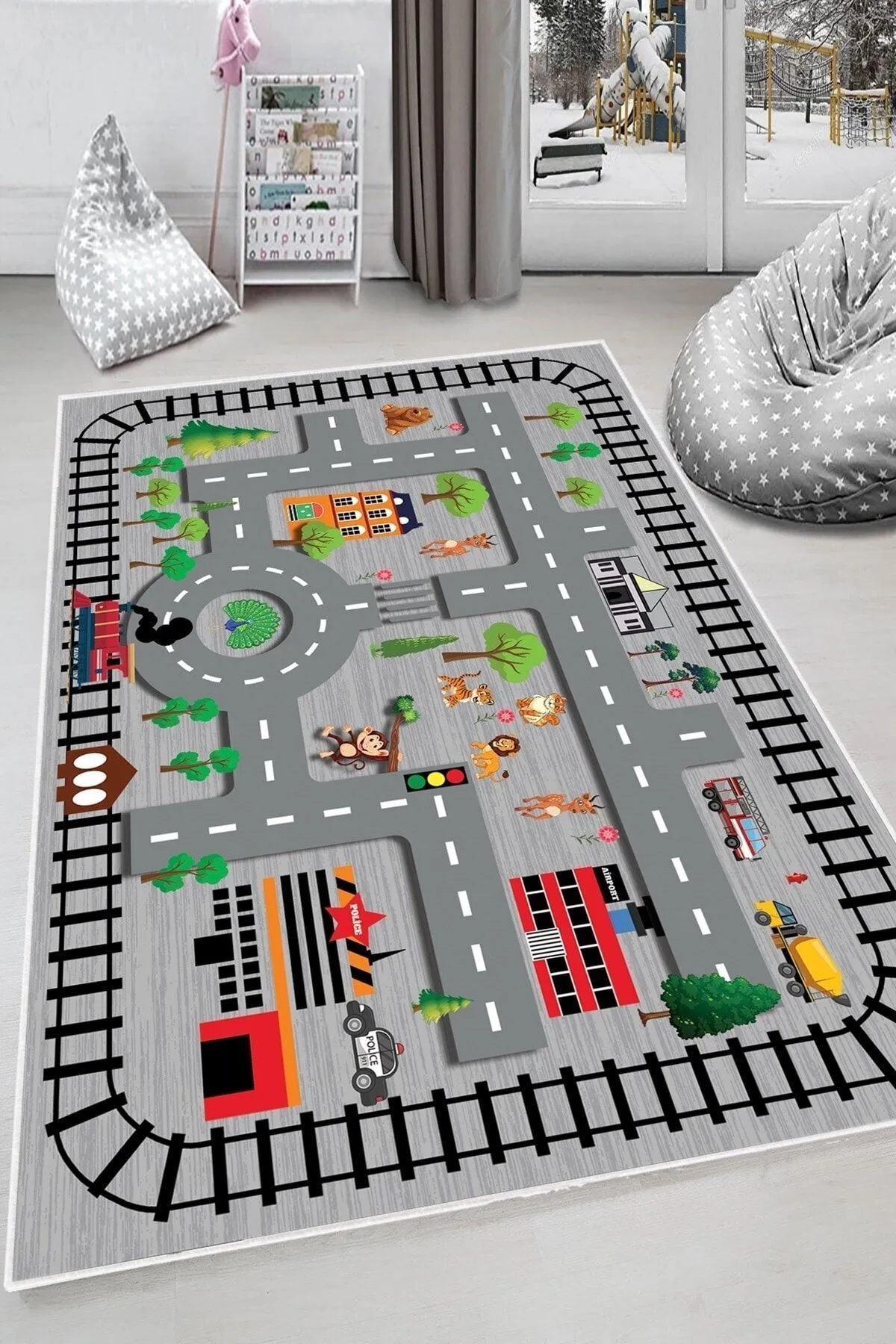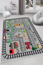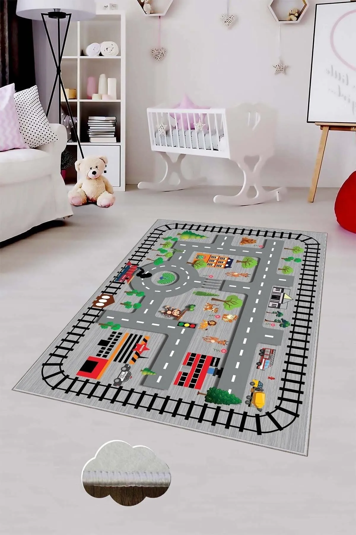 - Gri Ray Ve Trafik Yollu Yıkanabilir Kaymaz Taban Leke Tutmaz Bebek ve Çocuk Odası Halısı Hav Yüksekliği: 7-8 mmdir.