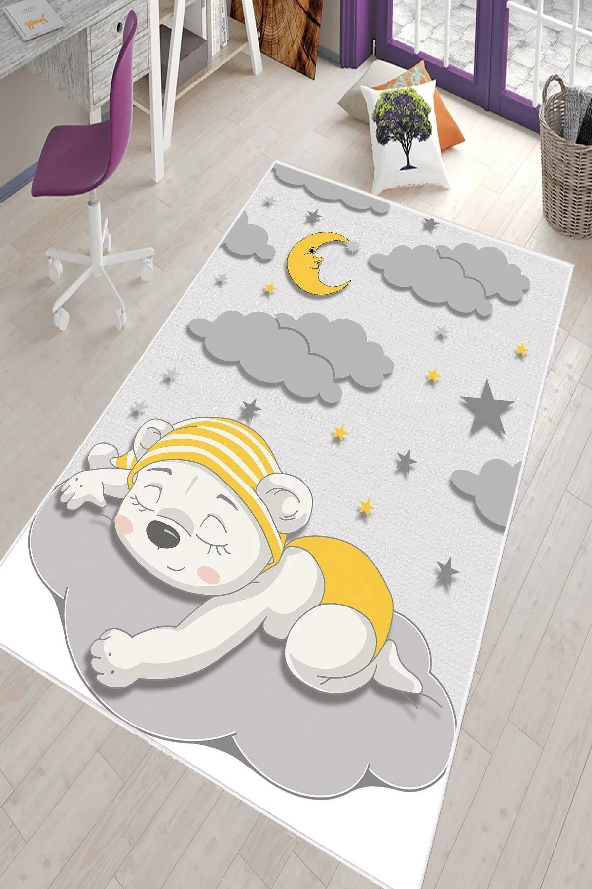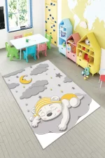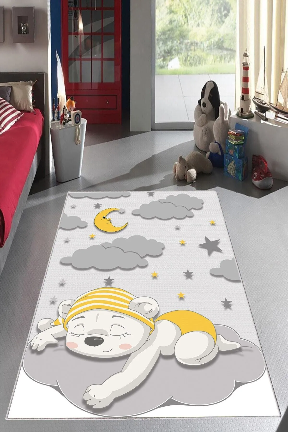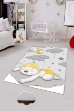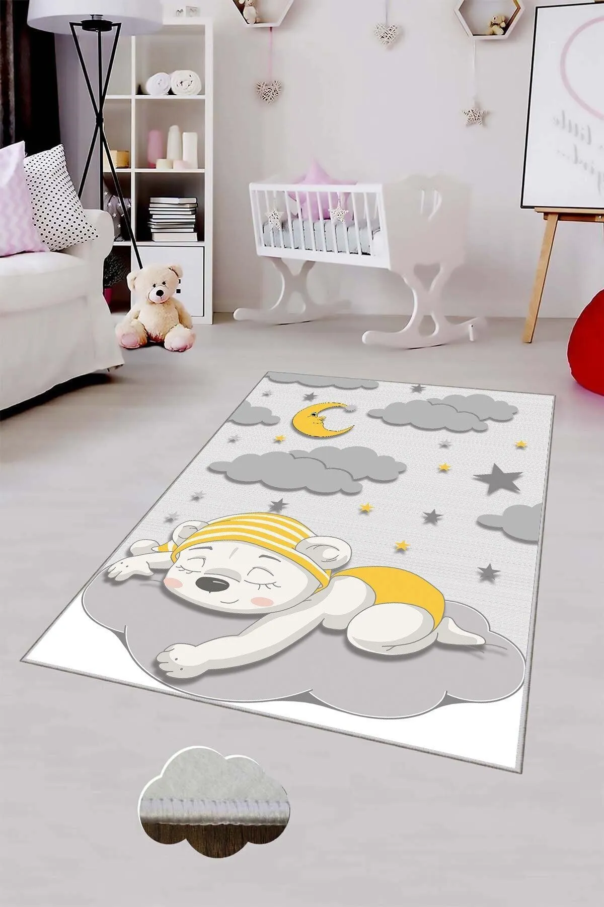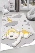 Ana Sayfa HALI ÇOCUK HALISI Gri Uyuyan Ayıcık Desenli Yıkanabilir Kaymaz Taban Leke Tutmaz Bebek ve Çocuk Odası Halısı