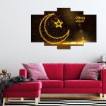 İslamik Ay Yıldız Desenli 5 Parça MDF Tablo