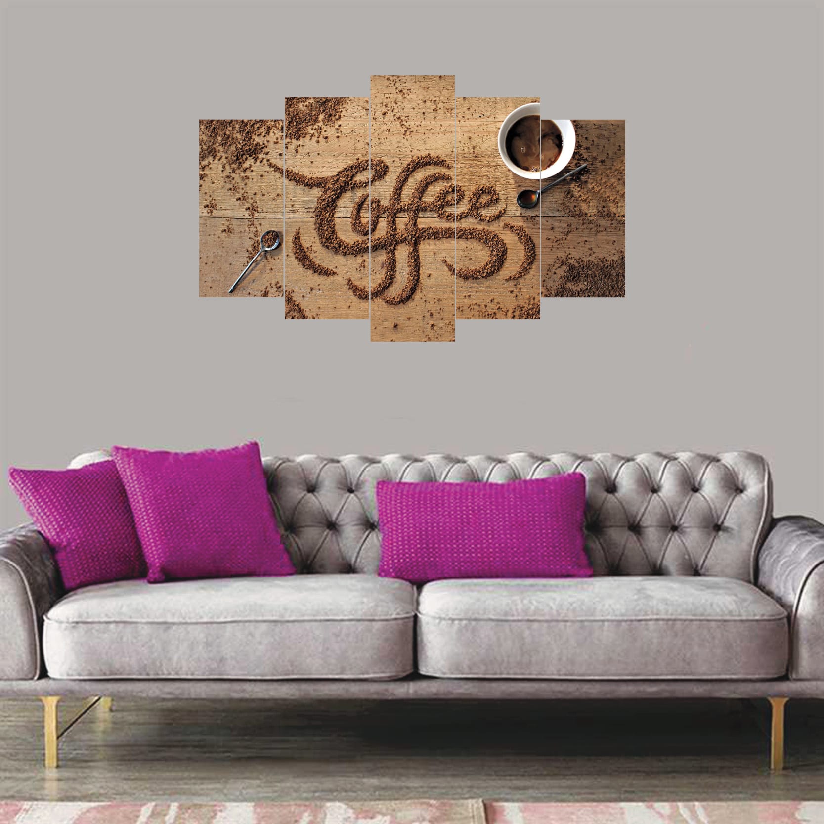 Kahve Temalı Dekoratif 5 Parça MDF Tablo
