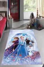 - Mavi Elsa Desenli Kız Çocuk Yıkanabilir Kaymaz Taban Leke Tutmaz Modern Salon Halısı ve Yolluk Hav Yüksekliği: 7-8 mmdir.