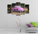 Pembe Vosvos Görselli 5 Parça MDF Tablo