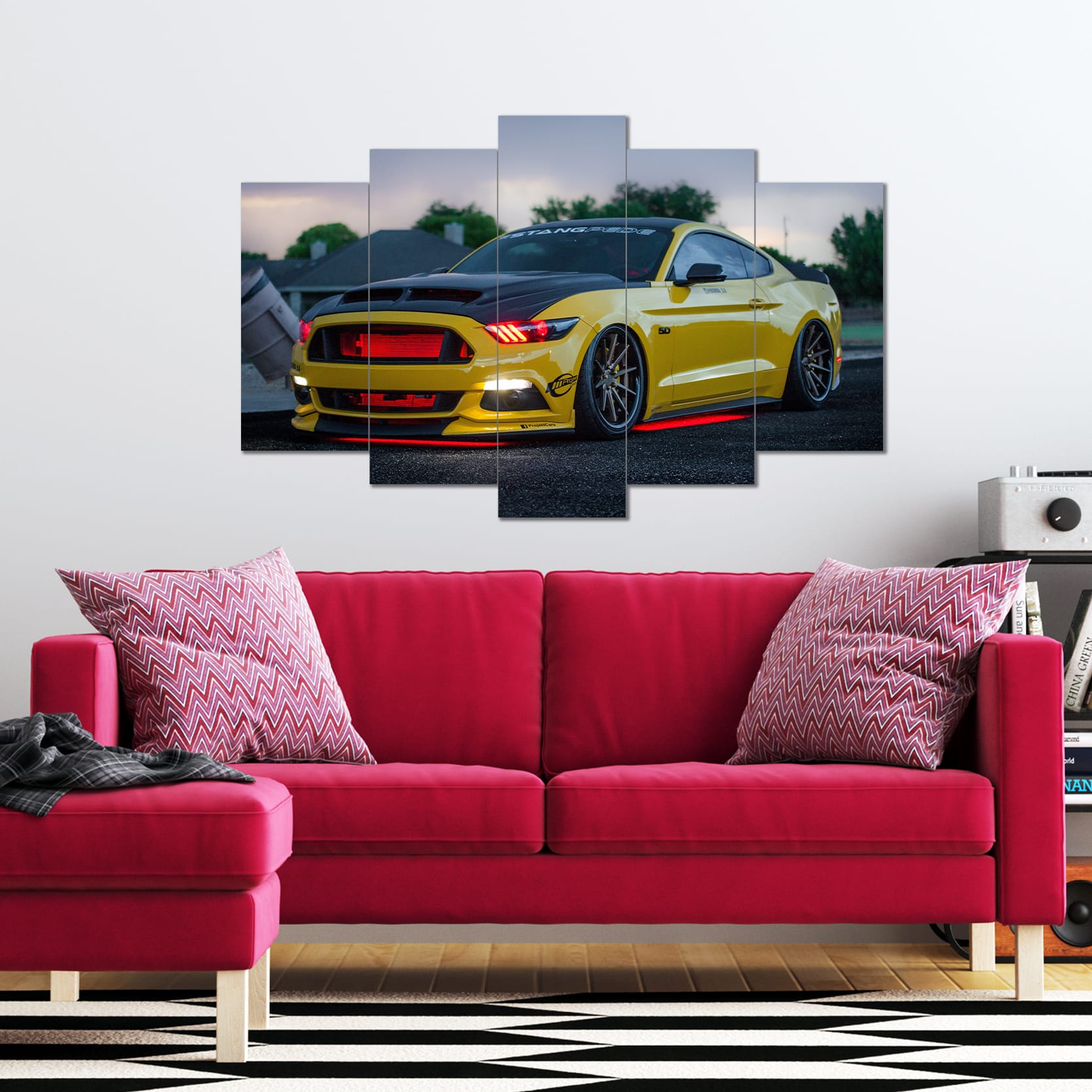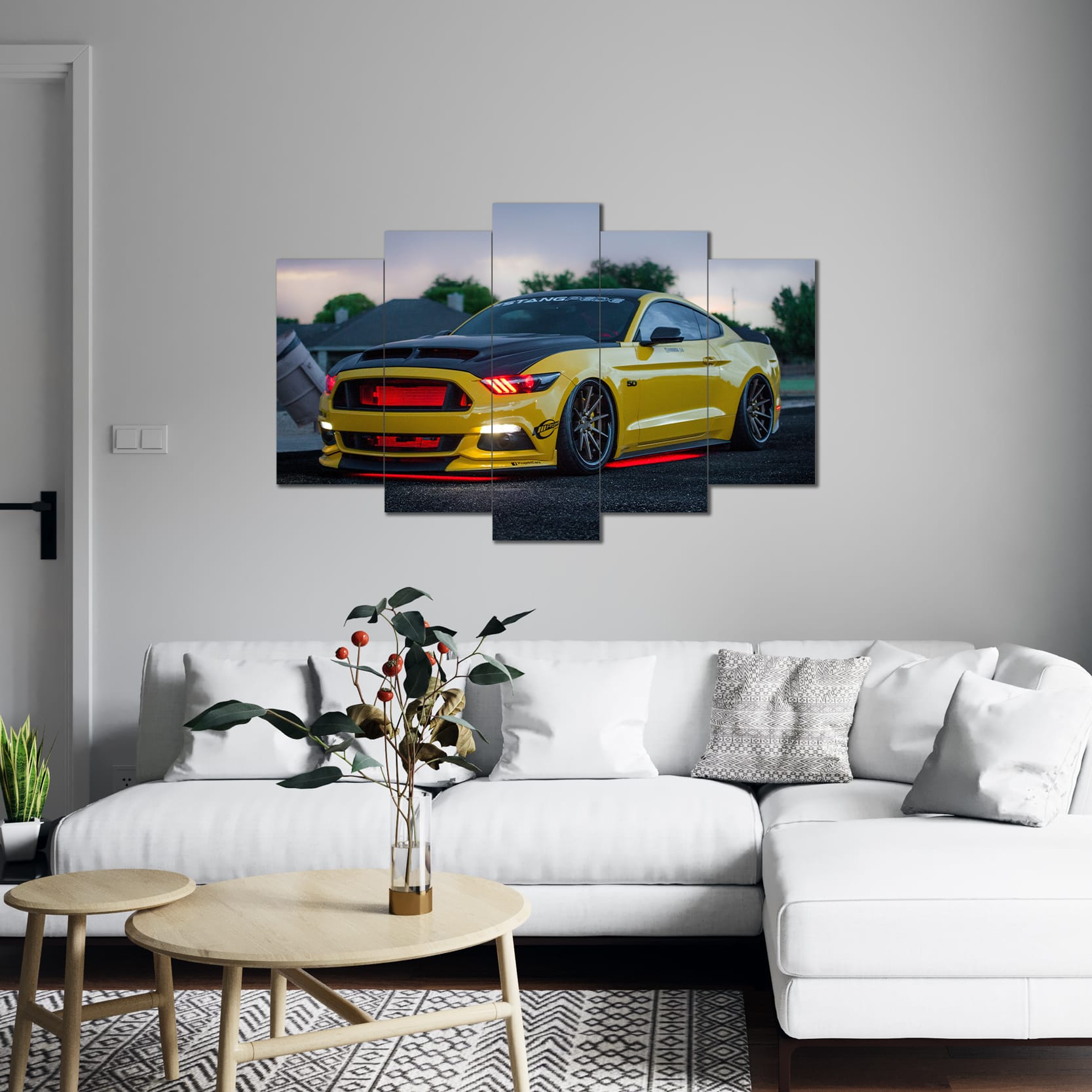 Modifiyeli Mustang Görselli 5 Parça MDF Tablo