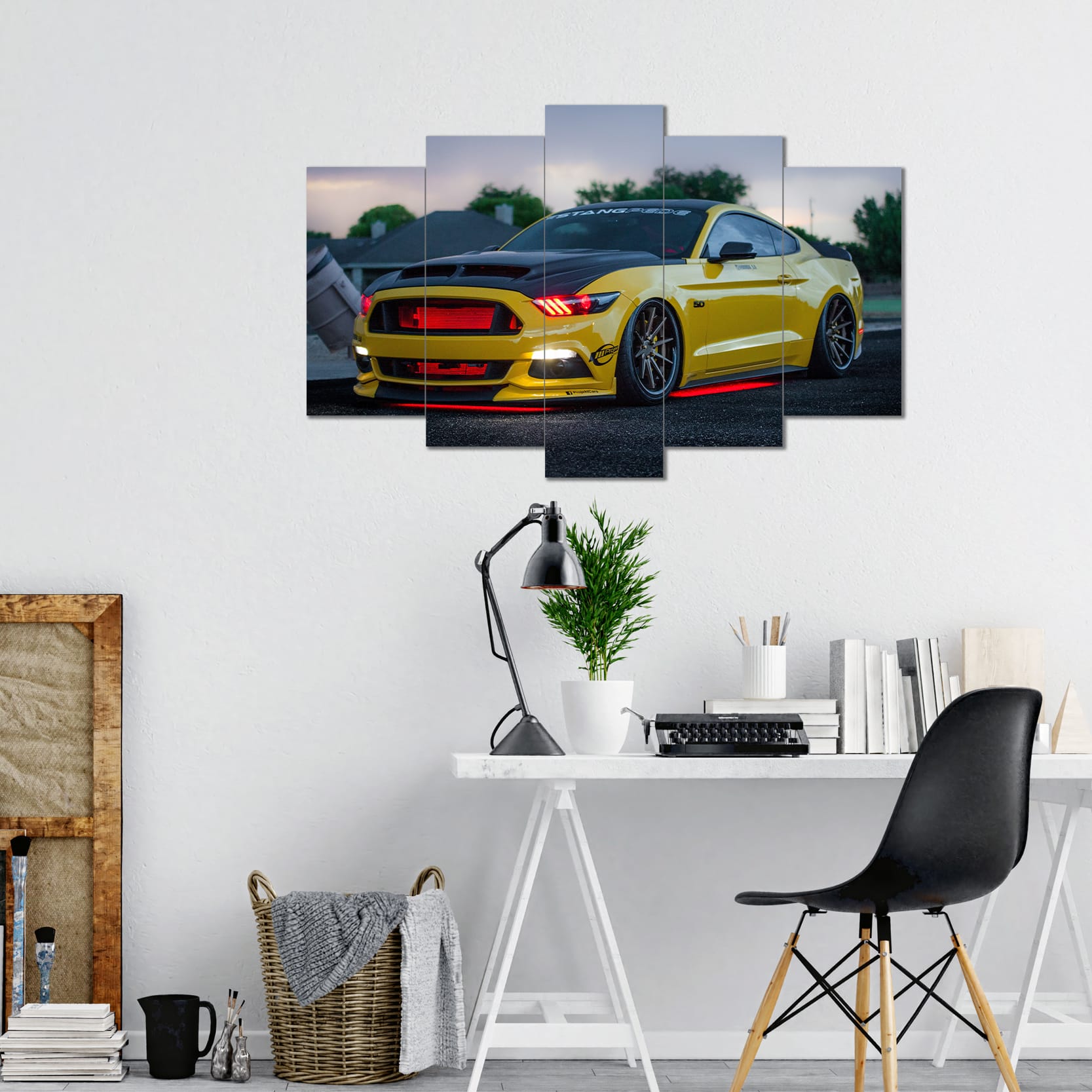Sarı Mustang Shelby Görselli 5 Parça MDF Tablo