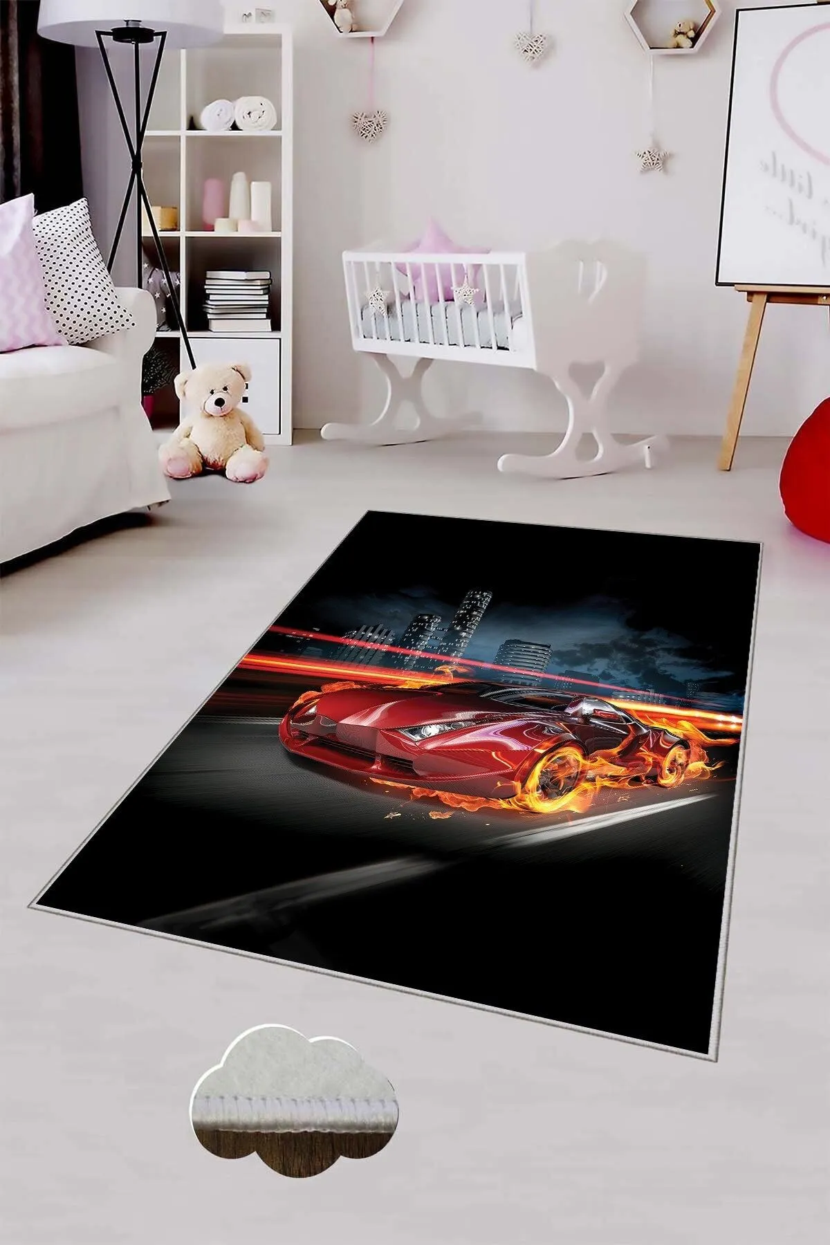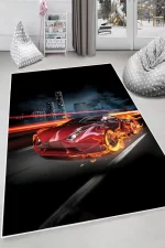 - Siyah Kırmızı Araba Desenli Yıkanabilir Kaymaz Taban Leke Tutmaz Modern Salon Halısı ve Yolluk Hav Yüksekliği: 7-8 mmdir.