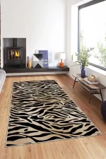 • Siyah Leopar desenli Yıkanabilir Kaymaz Taban Leke Tutmaz Modern Salon Halısı ve Yolluk Hav Yüksekliği: 7-8 mmdir.
