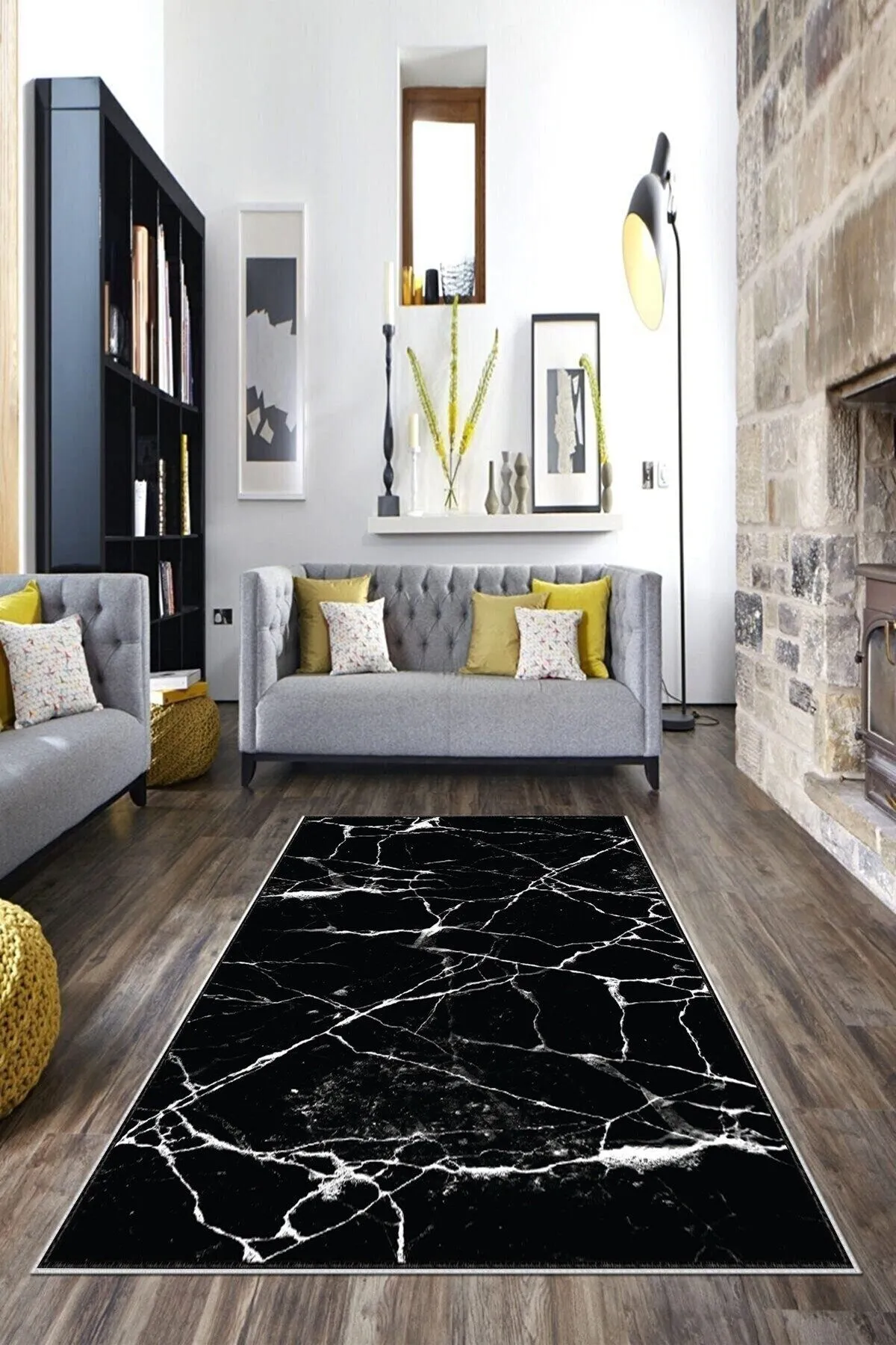 - Siyah Mermer Desenli Yıkanabilir Kaymaz Taban Leke Tutmaz Modern Salon Halısı ve Yolluk Hav Yüksekliği: 7-8 mmdir.