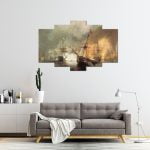 Tarihi Savaş Gemileri Desenli 5 Parça MDF Tablo
