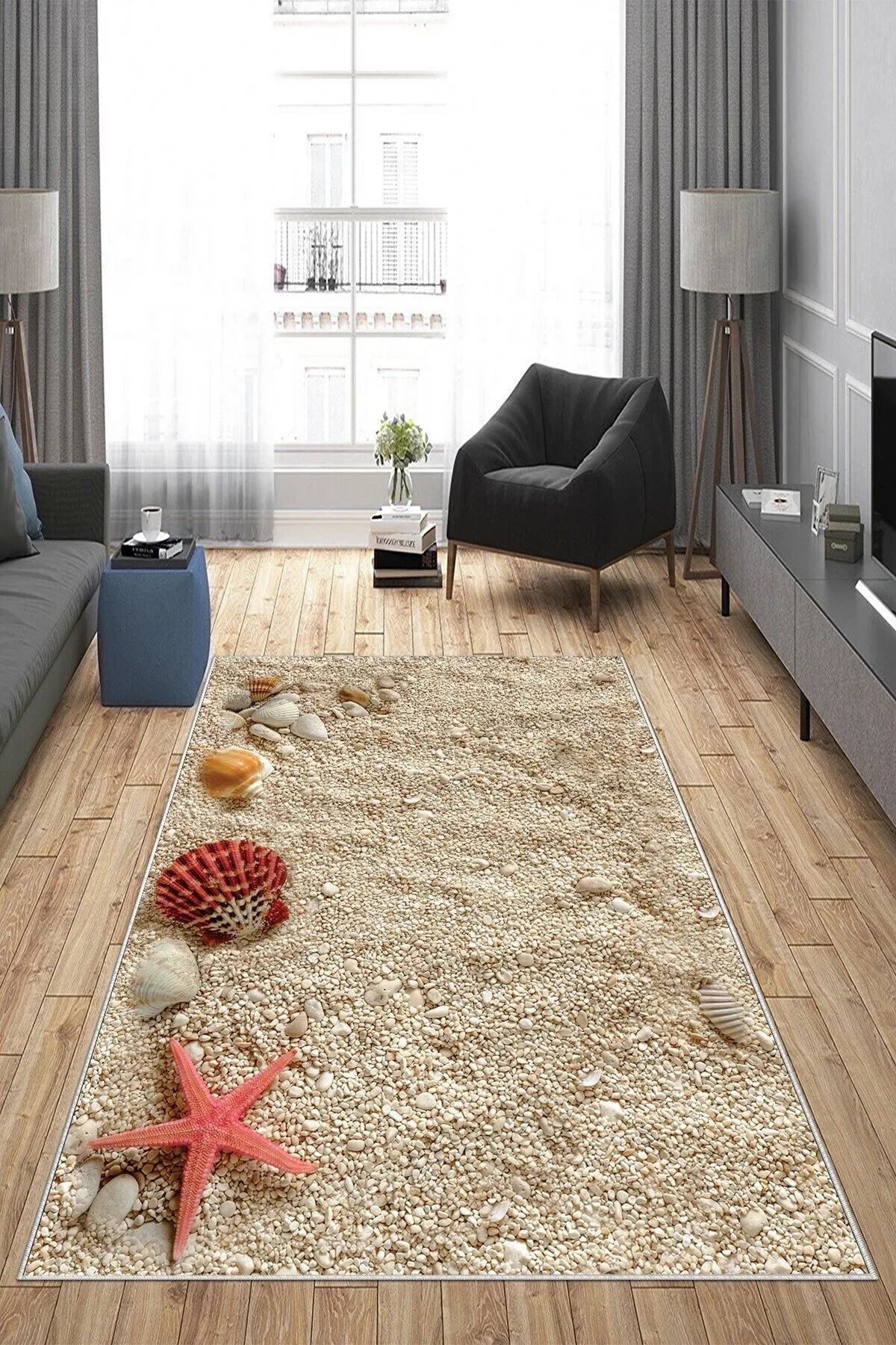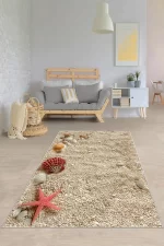 Ana Sayfa HALI Vizon Kumsal Desenli Yıkanabilir Kaymaz Taban Leke Tutmaz Modern Salon Halı Yolluk