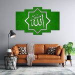 Yeşil Desen Üzerine Allah Yazılı 5 Parça MDF Tablo