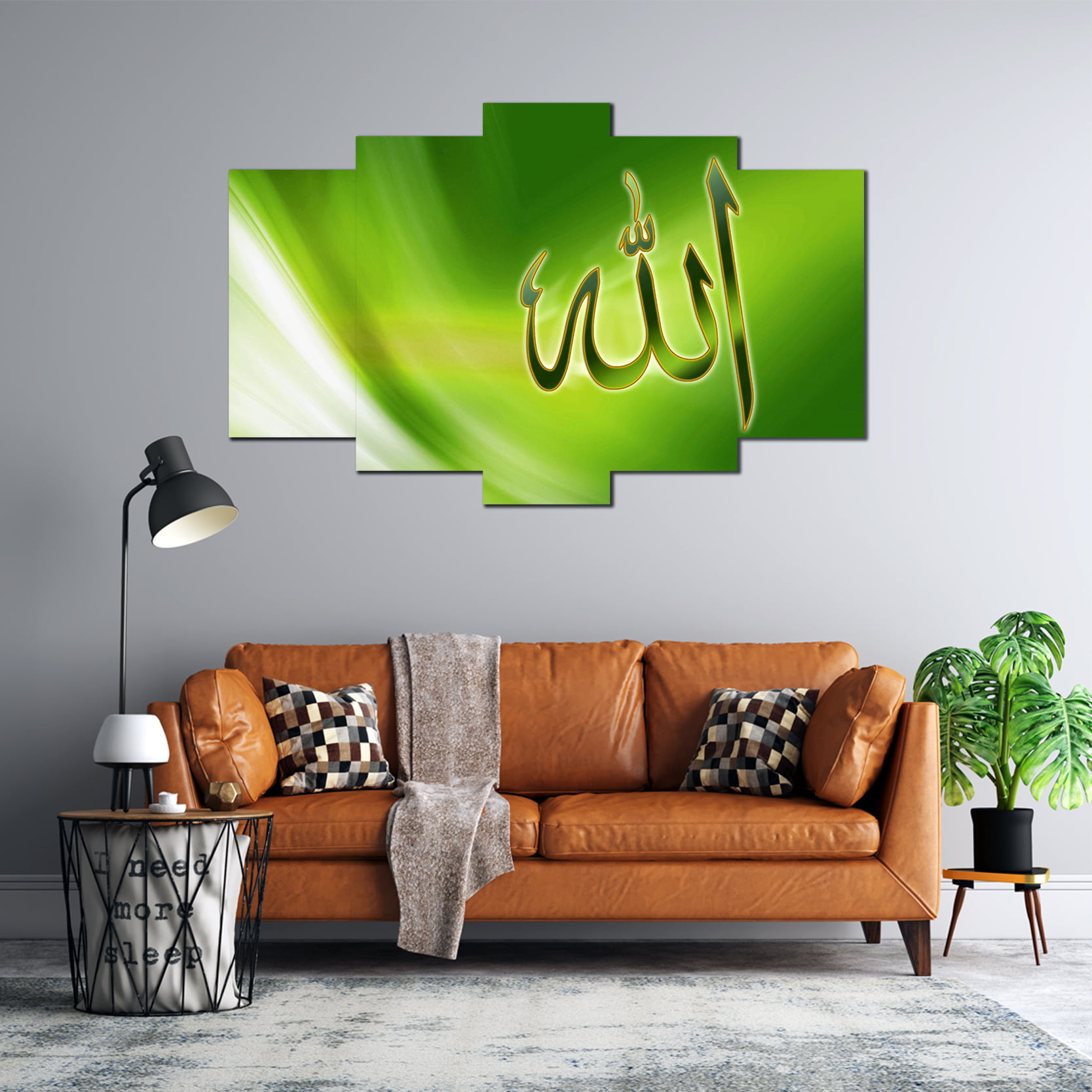Yeşil Üzerine Allah Yazılı 5 Parça MDF Tablo